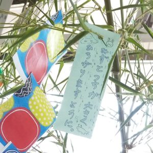 ゆいぽーとの玄関先が七夕飾りされてたよ もちろん私の願い事は芸術祭…