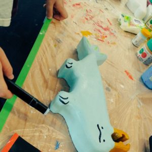アーティスト松島菜月が描いた『にゅう潟の仲間たち』の塗り絵に、色鉛…
